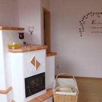 Sie verfügt über einen großzügigen, kombinierten Wohn-Essbereich mit Kachelofen, Schlafcouch und Flachbildfernseher.